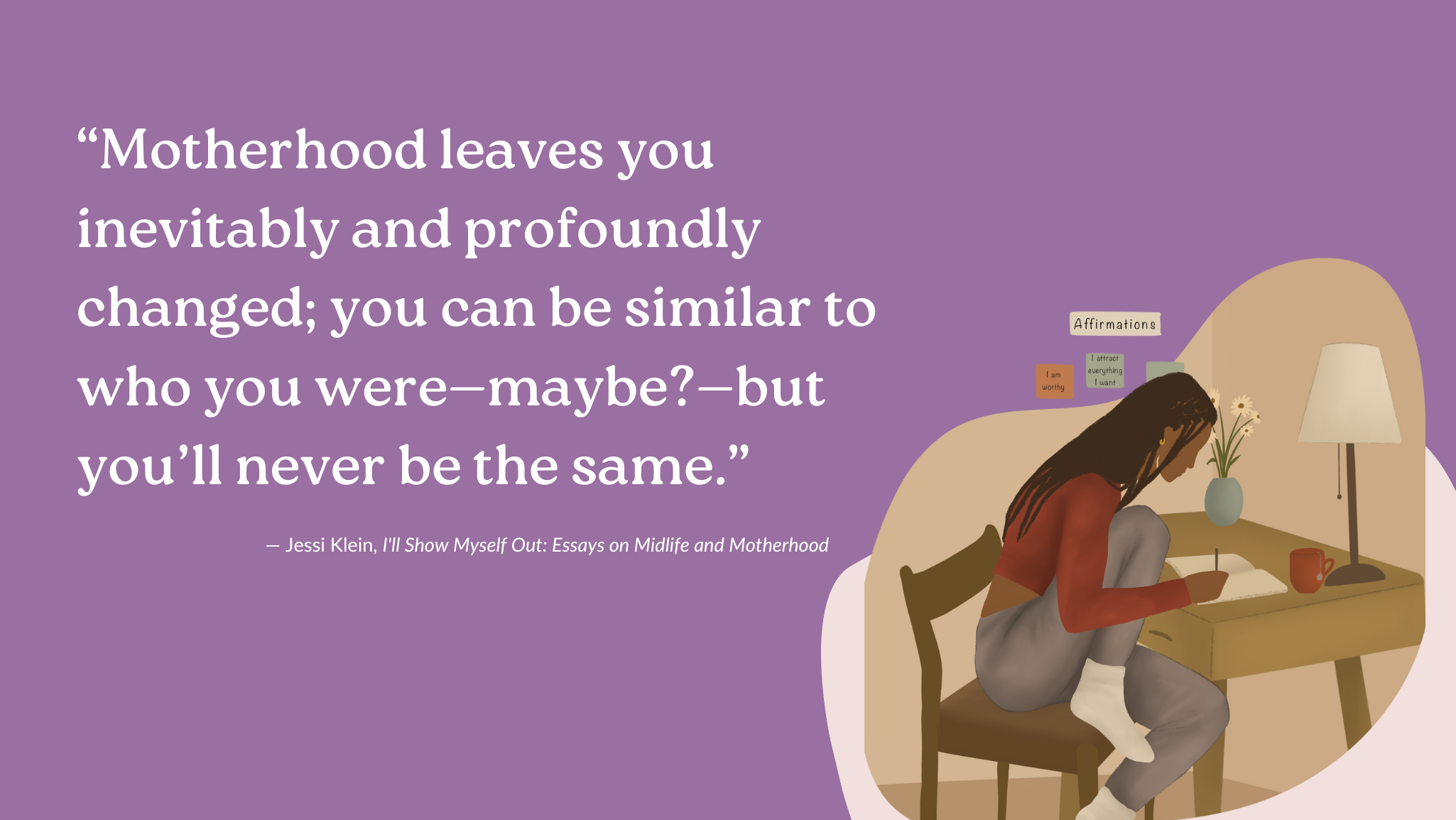 What about your old self do you miss? What parts of your pre-mom identity do you want to hold onto? What parts are you okay letting go of?